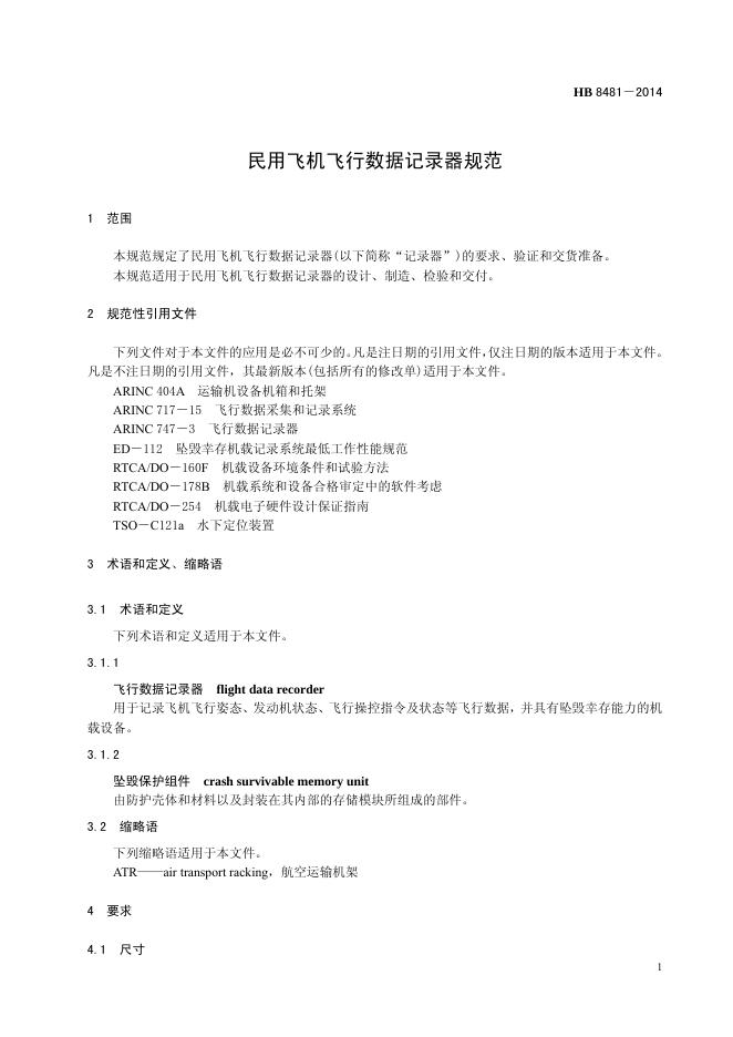 HB 8481-2014(2017) 民用飞机飞行数据记录器规范