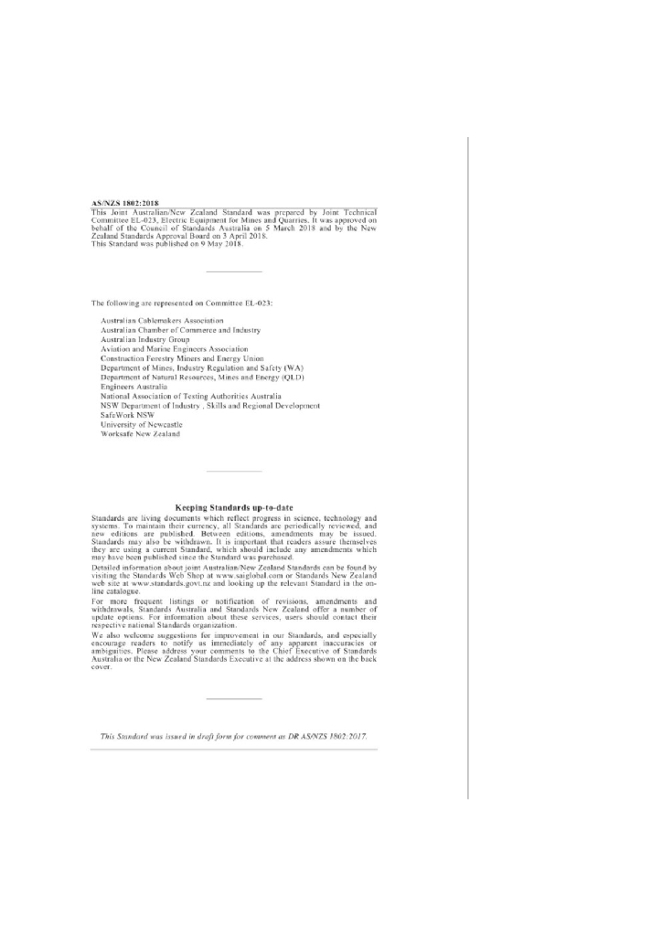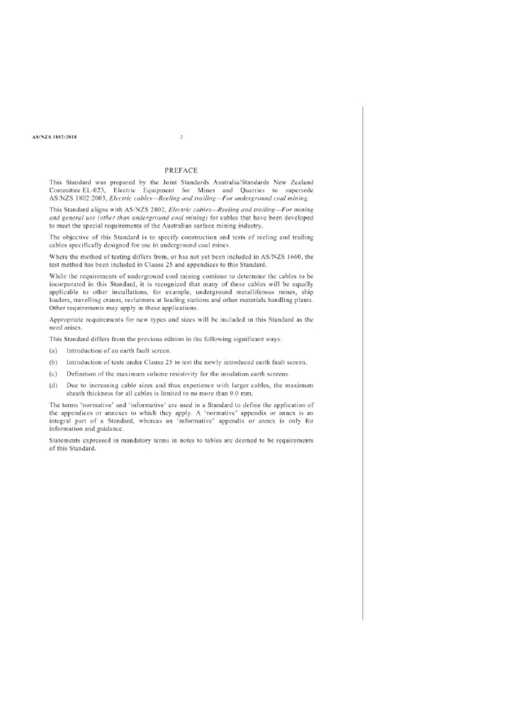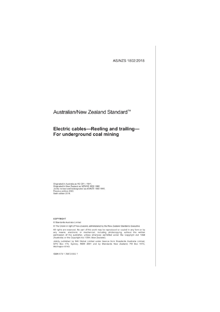 AS/NZS 1802:2018 地下采煤工程用卷绕-拖曳电缆