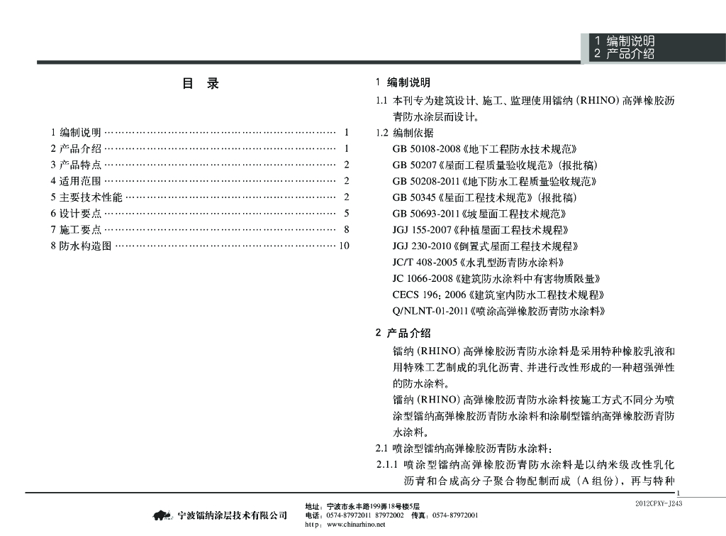 2012CPXY-J243 镭纳(RHINO)喷涂高弹橡胶沥青防水涂料图集