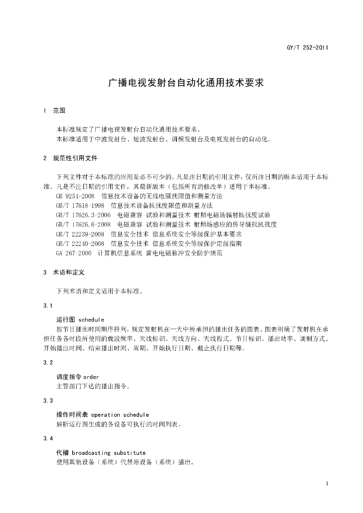 GY/T 252-2011 广播电视发射台自动化通用技术要求