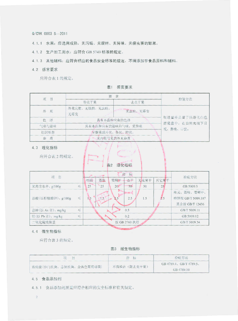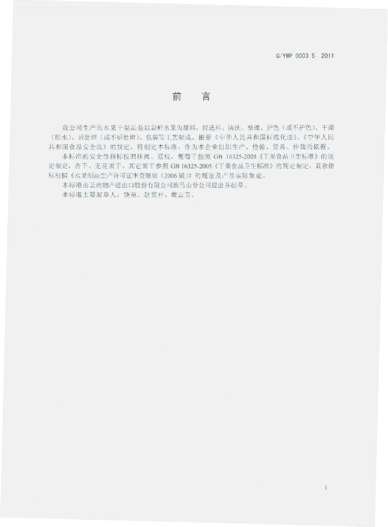 Q/YWP 0003S-2011 水果干制品