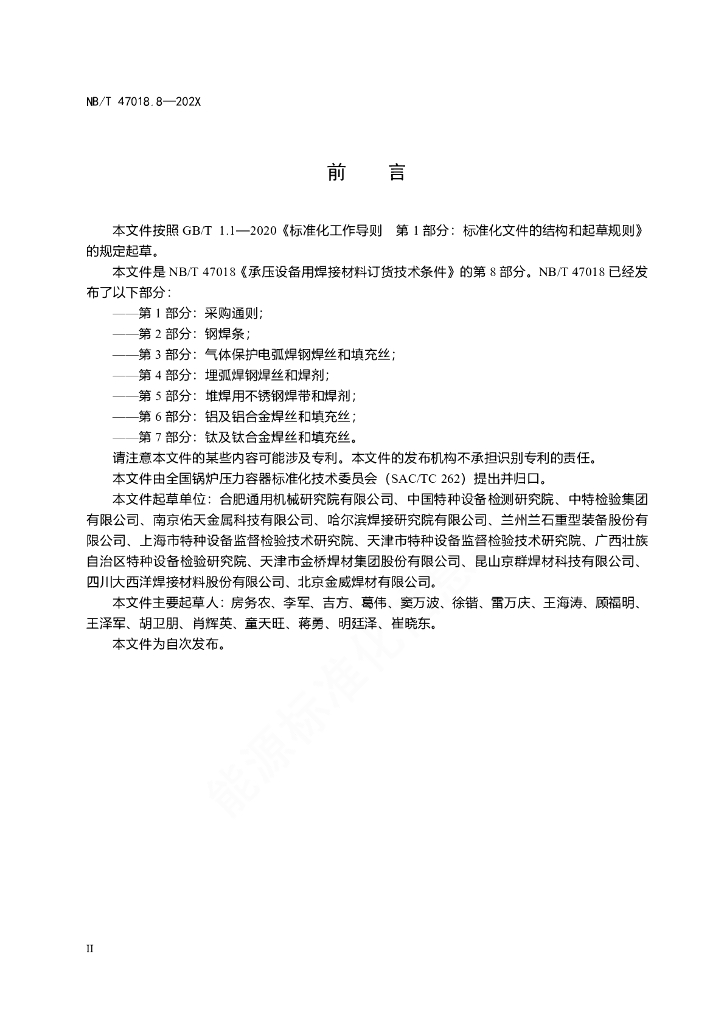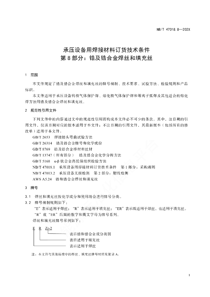 NB/T 47018.8-2022 承压设备用焊接材料订货技术条件 第8部分:锆及锆合金焊丝和填充丝