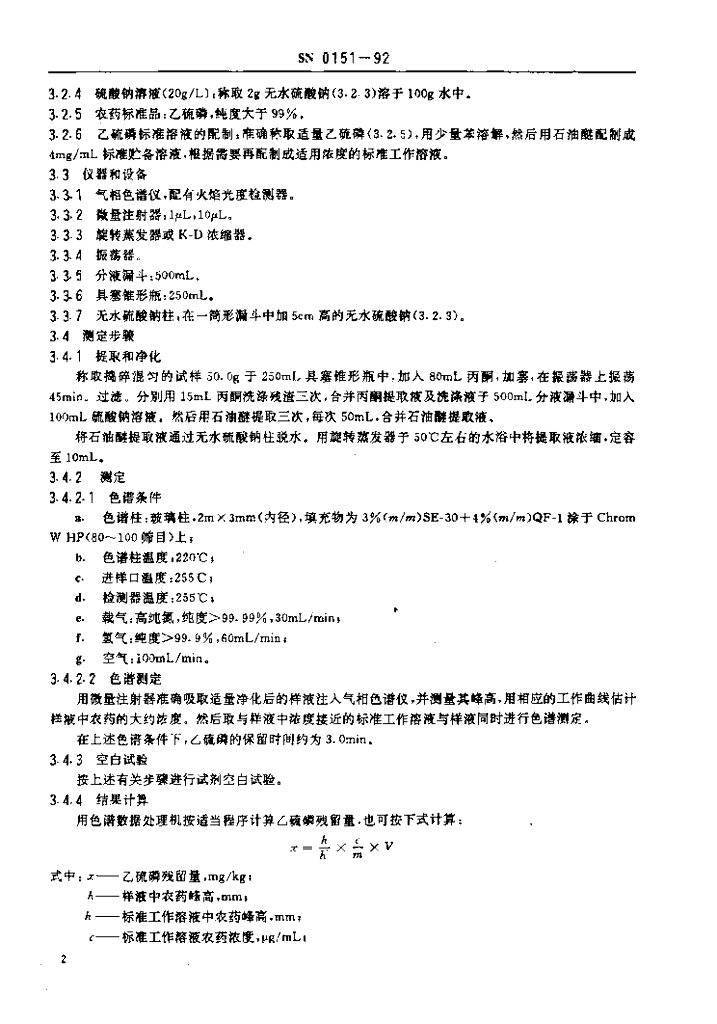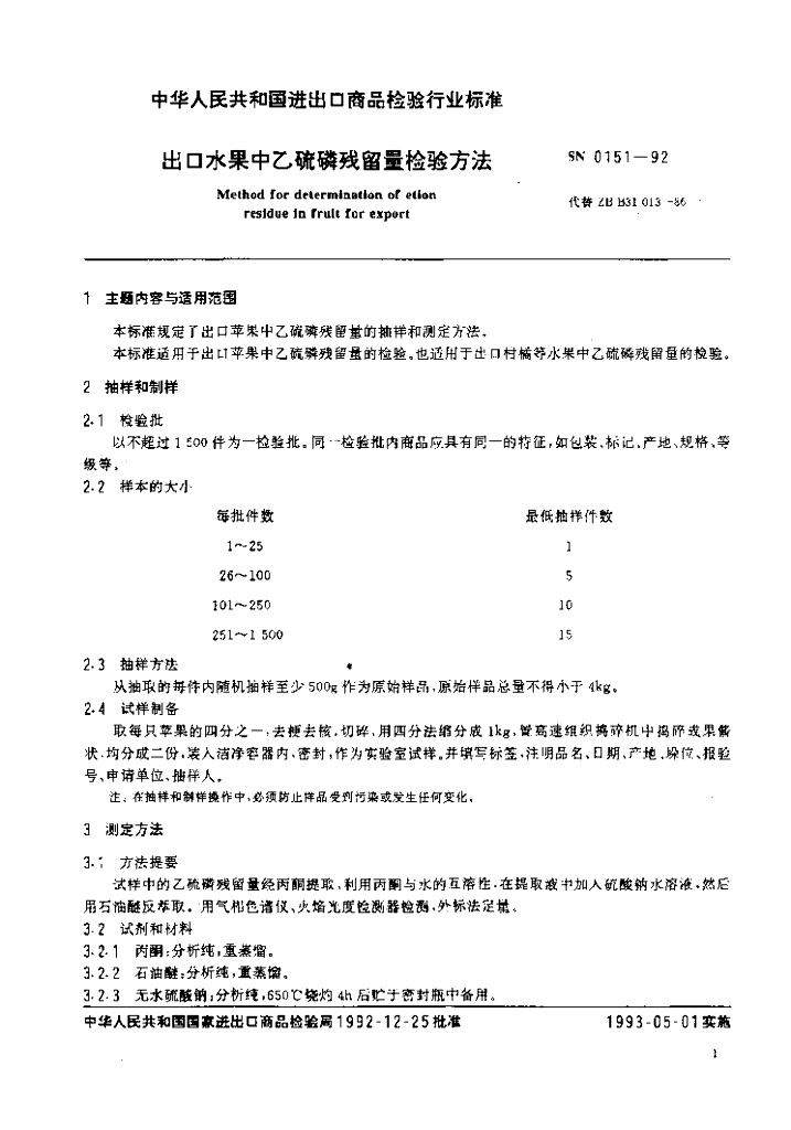 SN 0151-1992 出口水果中乙硫磷残留量检验方法