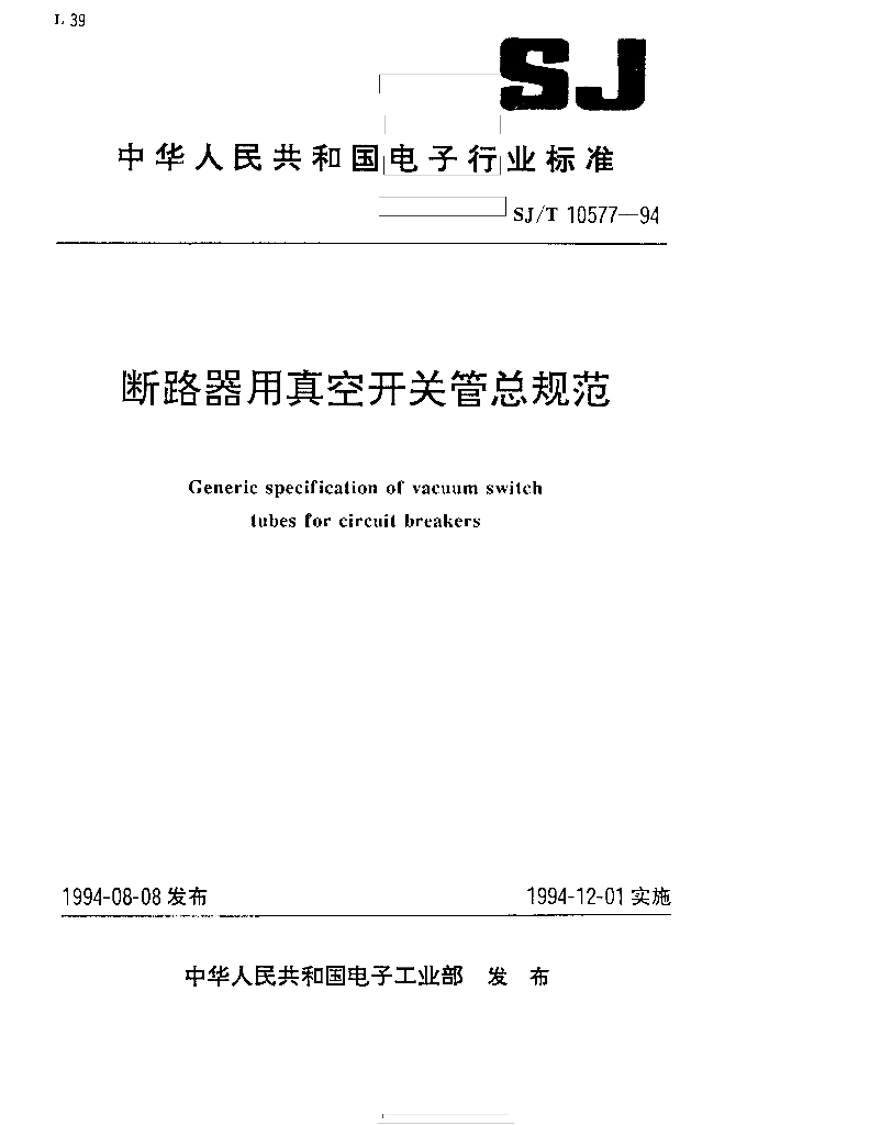 SJ/T 10577-1994 断路器用真空开关管总规范