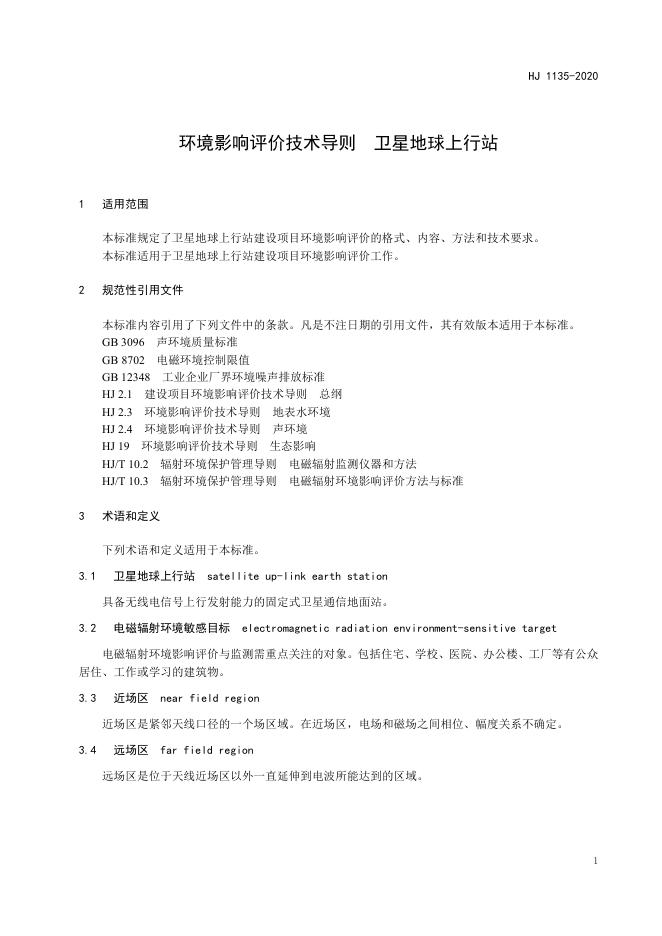 HJ 1135-2020 环境影响评价技术导则 卫星地球上行站