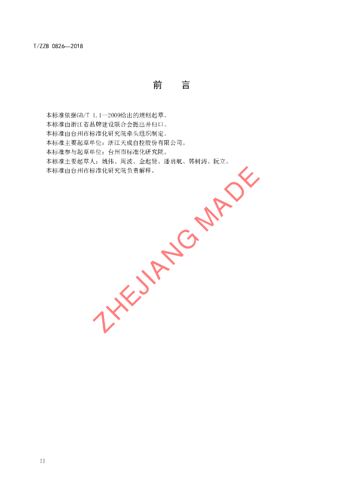 浙江天成自控股份有限公司、台州市标准化研究院