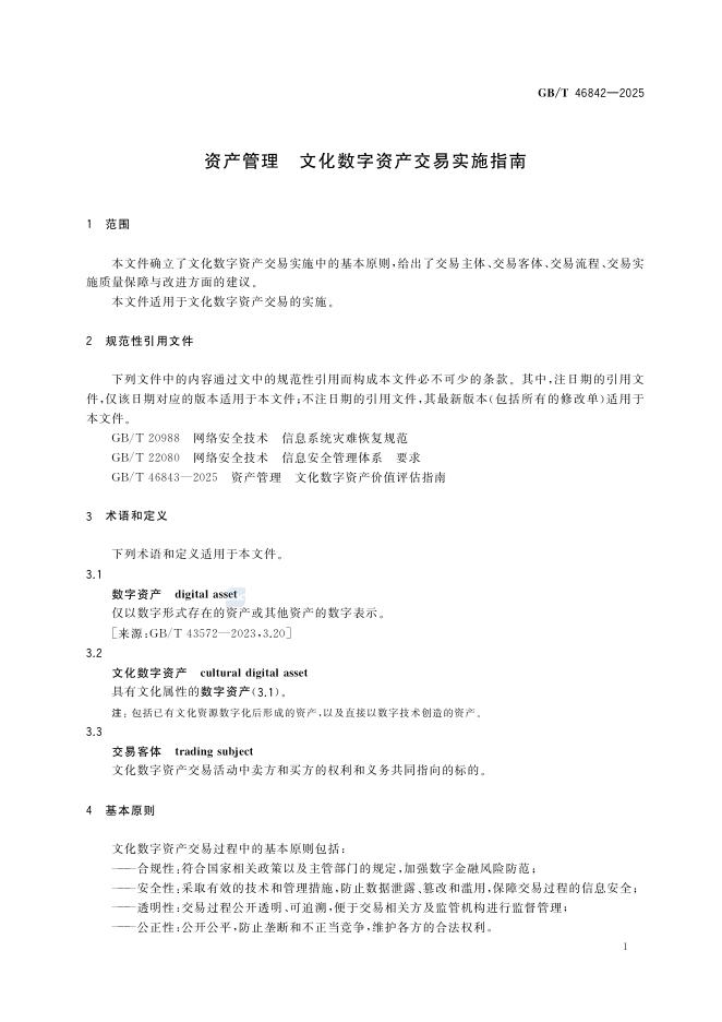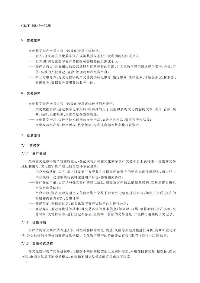 GB/T 46842-2025 资产管理 文化数字资产交易实施指南