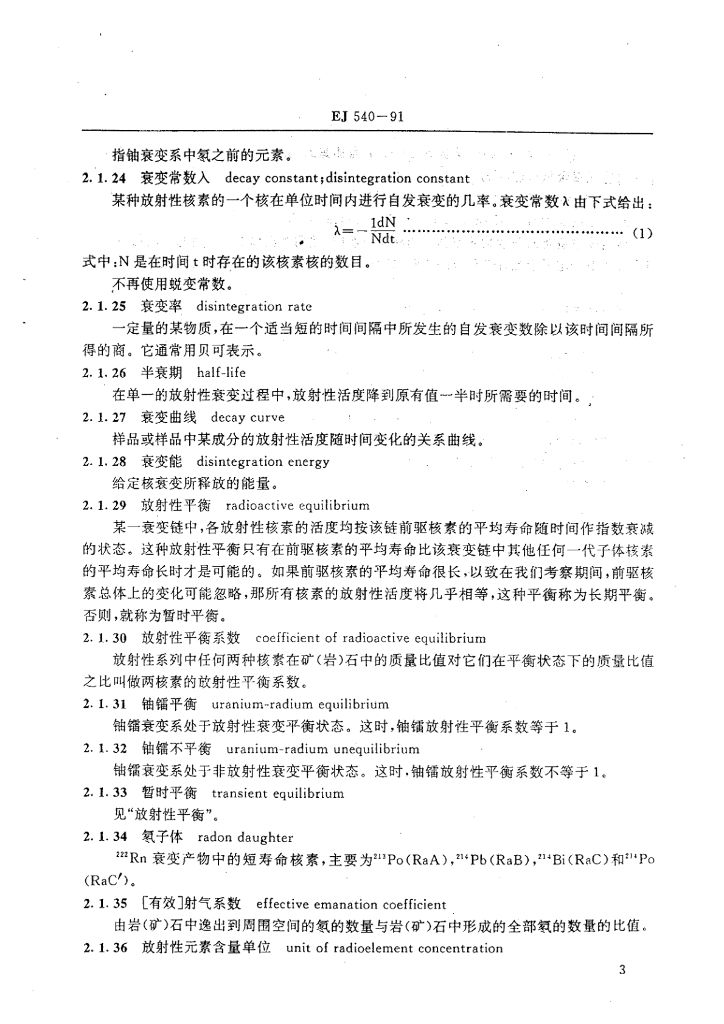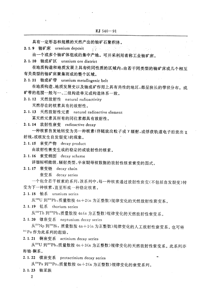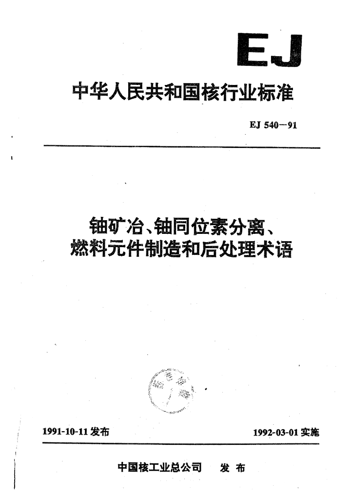 EJ 540-1991 铀矿冶、铀同位素分离、燃料元件制造和后处理术语