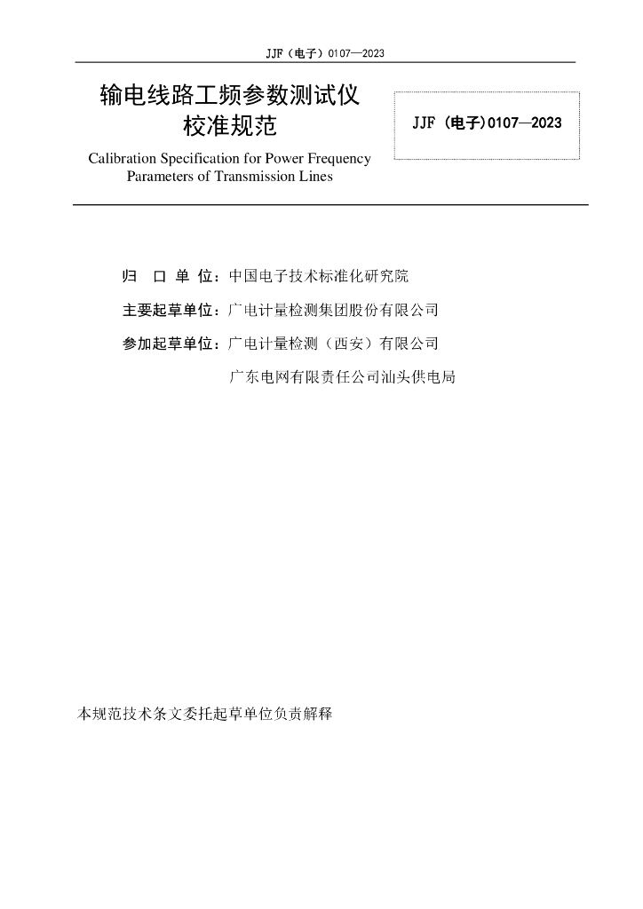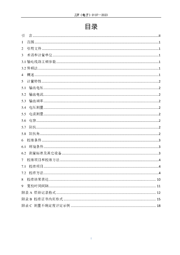 JJF(电子)00111-2023 输电线路工频参数测试仪校准规范(报批稿)