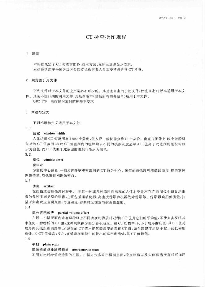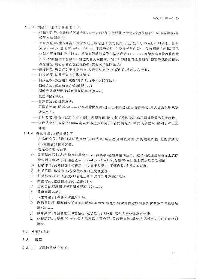 WS/T 391-2012 CT检查操作规程