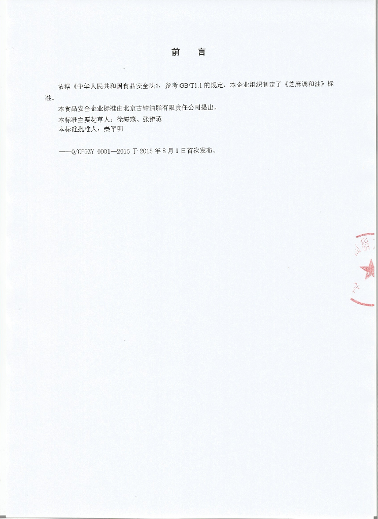 Q/CPGZY 0001-2015 北京古钟油脂有限责任公司 芝麻调和油