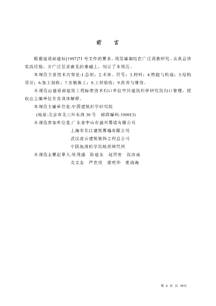 中国建筑科学研究院、广东省中山市盛兴幕墙有限公司、上海市东江建筑幕墙有限公司、武汉凌云建筑装饰工程总公司、中国地质科学院地质研究所