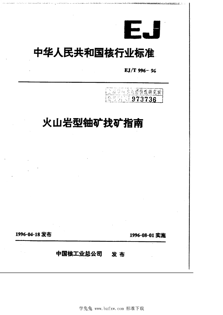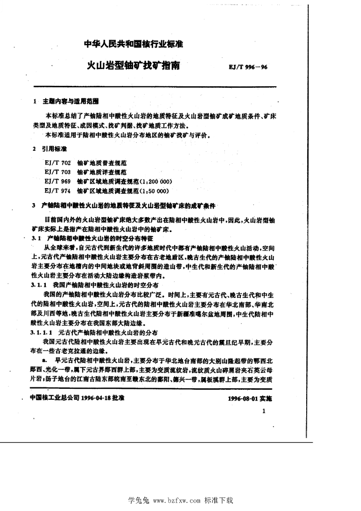 EJ/T 996-1996 火山岩型铀矿找矿指南