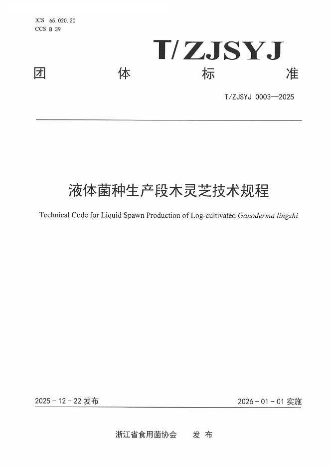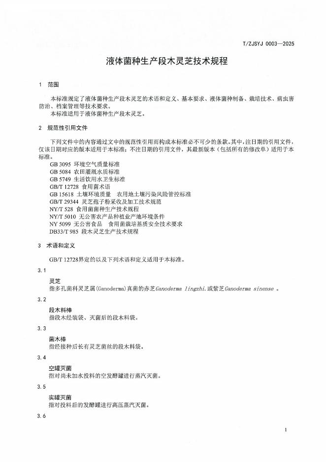 T/ZJSYJ 0003-2025 液体菌种生产段木灵芝技术规程
