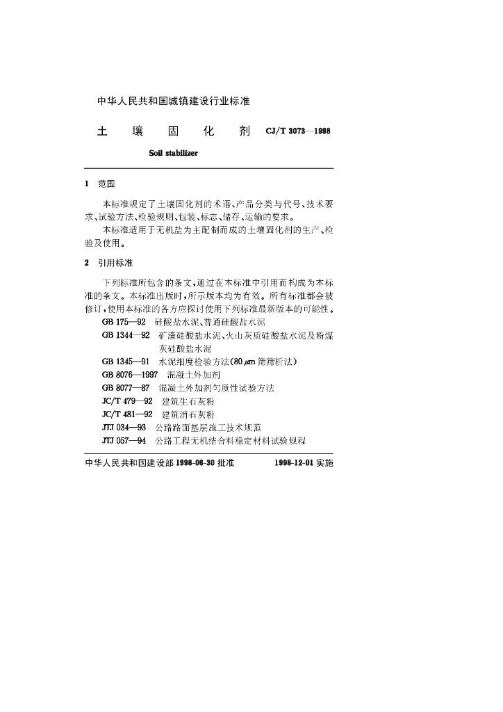 CJ/T 3073-1998 土壤固化剂