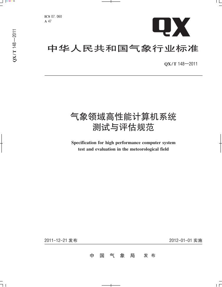 QX/T 148-2011 气象领域高性能计算机系统测试与评估规范