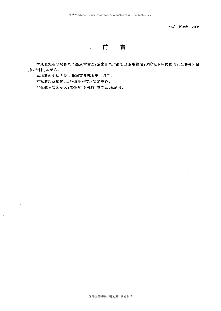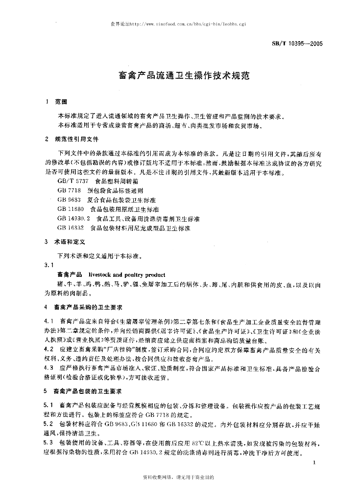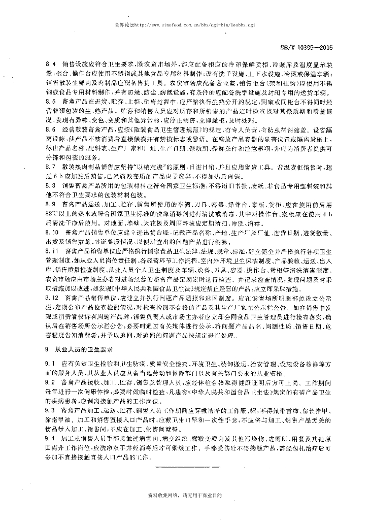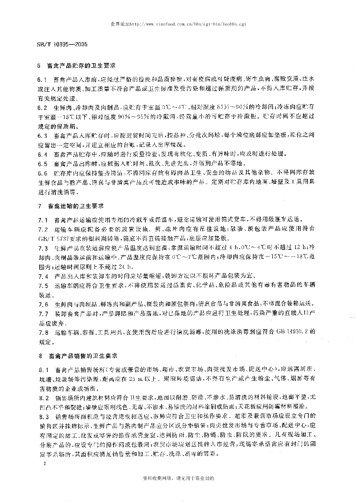 SB/T 10395-2005 畜禽产品流通卫生操作技术规范