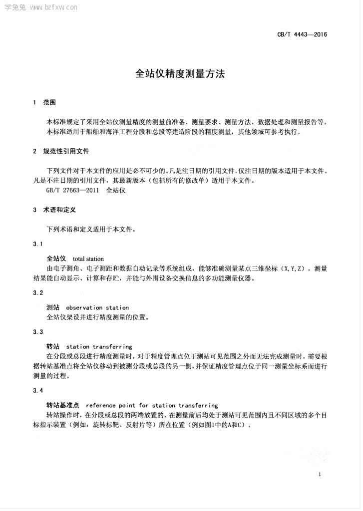 CB/T 4443-2016 全站仪精度测量方法