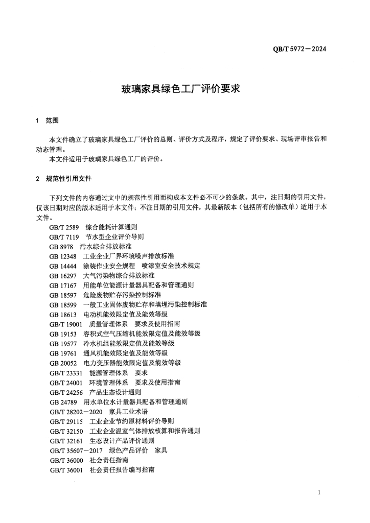 QB/T 5972-2024 玻璃家具绿色工厂评价要求