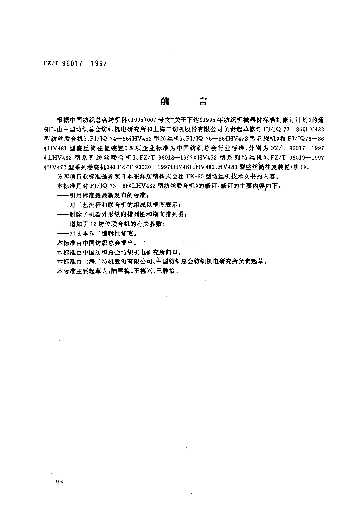 FZ/T 96017-1997 LHV432型系列纺丝联合机