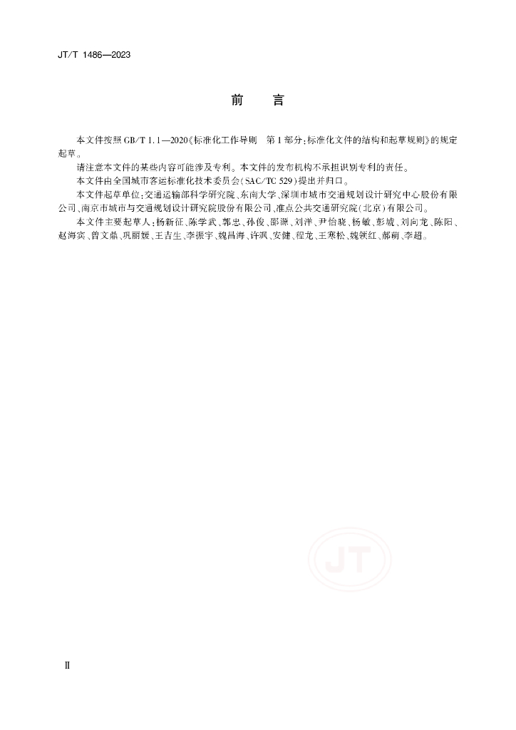 交通运输部科学研究院、东南大学、深圳市城市交通规划设计研究中心股份有限公司、南京市城市与交通规划设计研究院股份有限公司、准点公共交通研究院(北京)有限公司