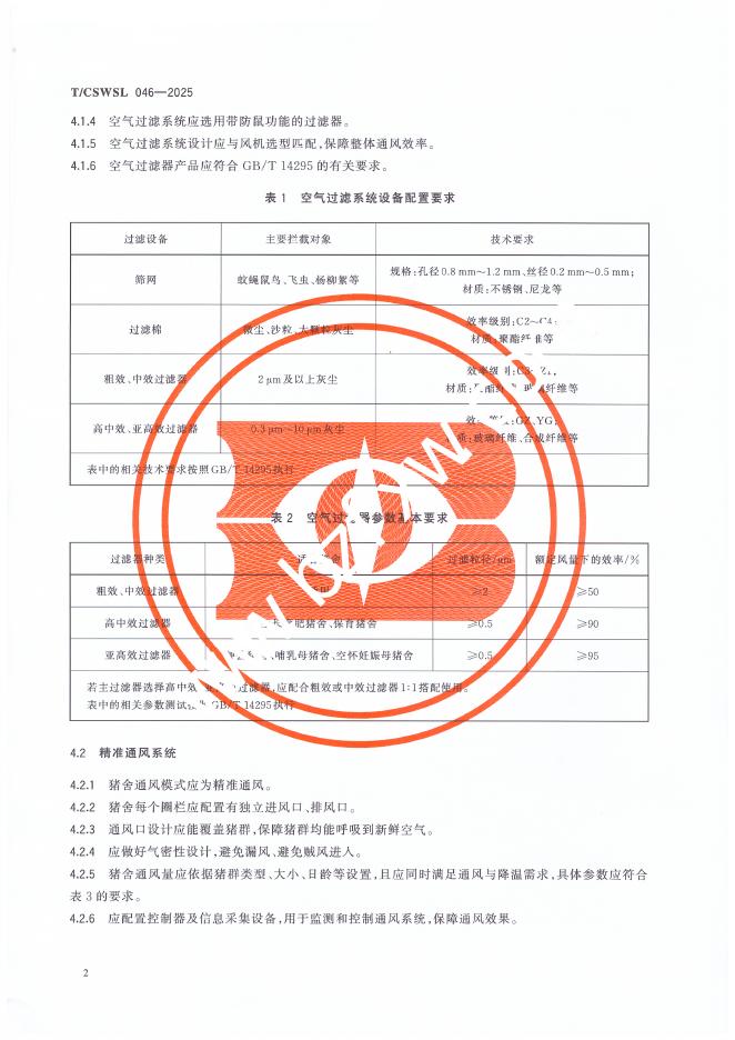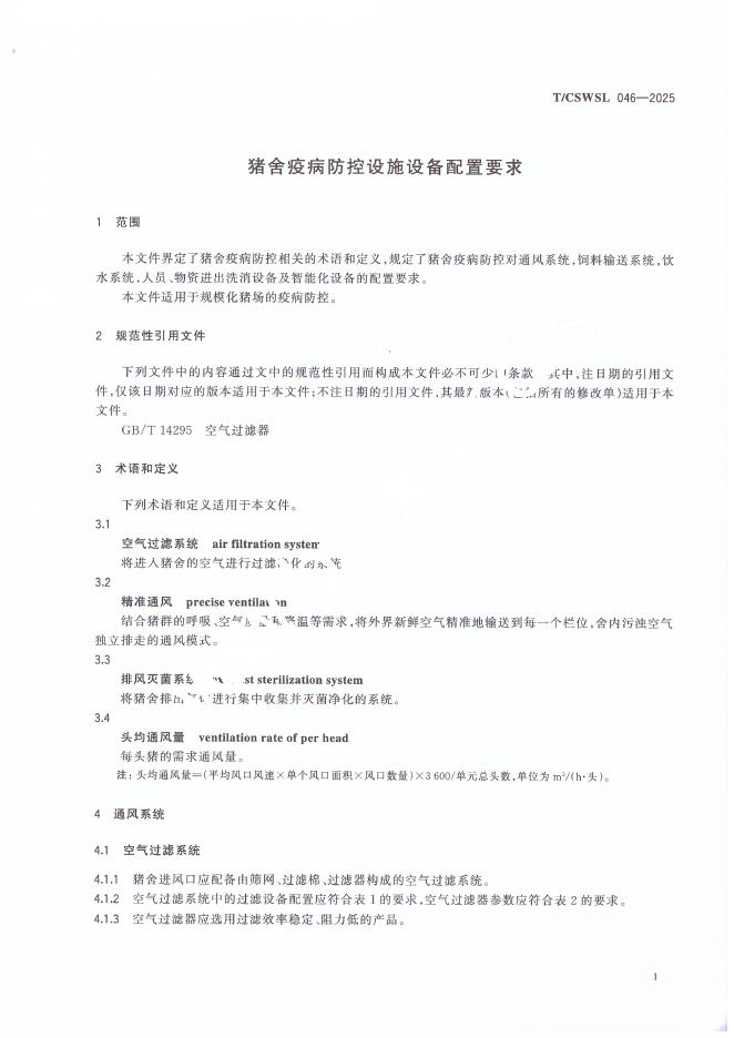 T/CSWSL 046-2025 猪舍疫病防控设施设备配置要求