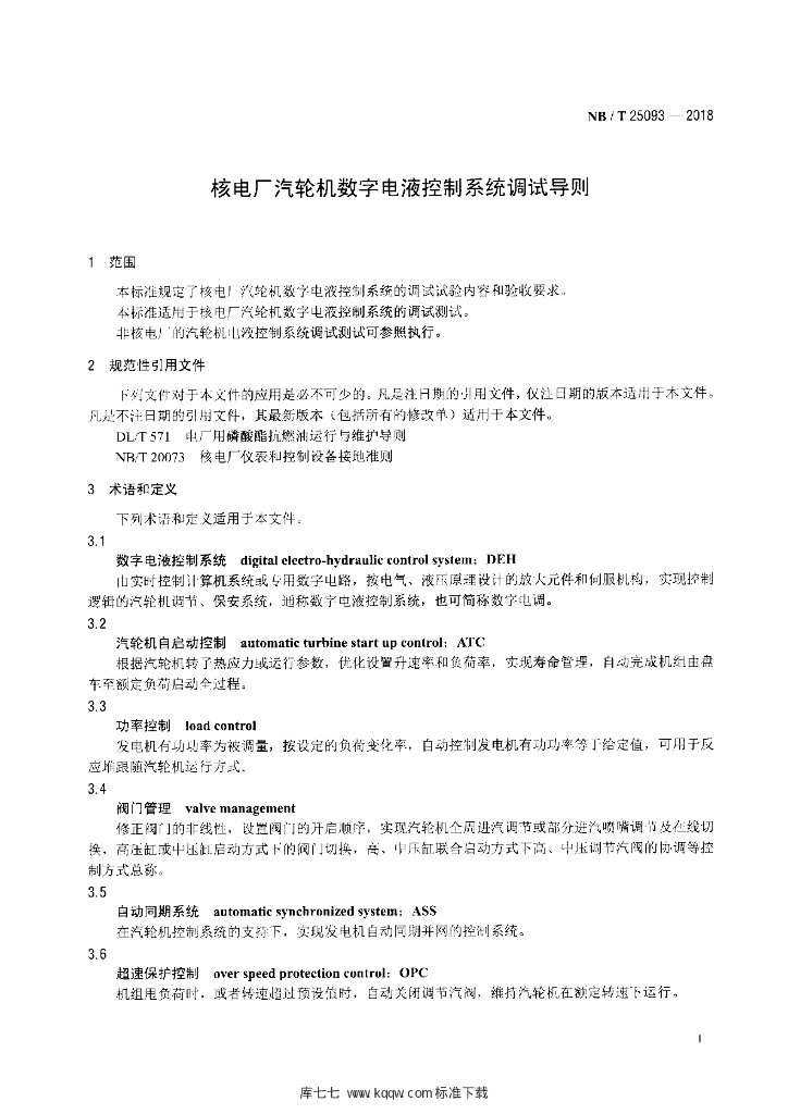 NB/T 25093-2018 核电厂汽轮机数字电液控制系统调试导则