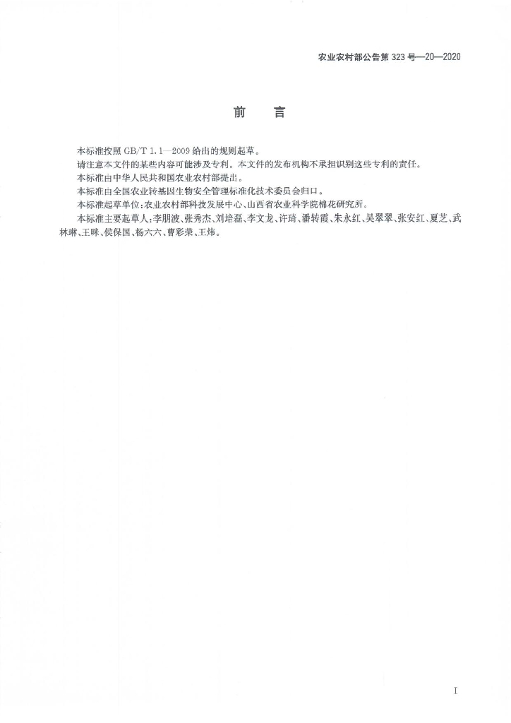 农业农村部公告第323号-20-2020 转基因植物及其产品成分检测 耐除草剂大豆ZH10-6及其衍生品种定性PCR方法