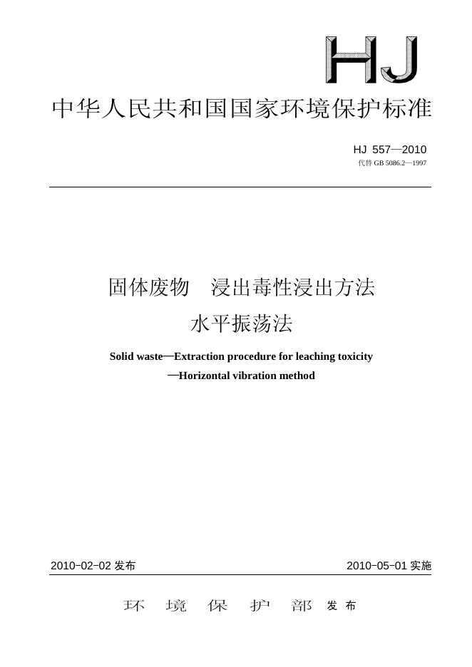 HJ 557-2010 固体废物 浸出毒性浸出方法 水平振荡法