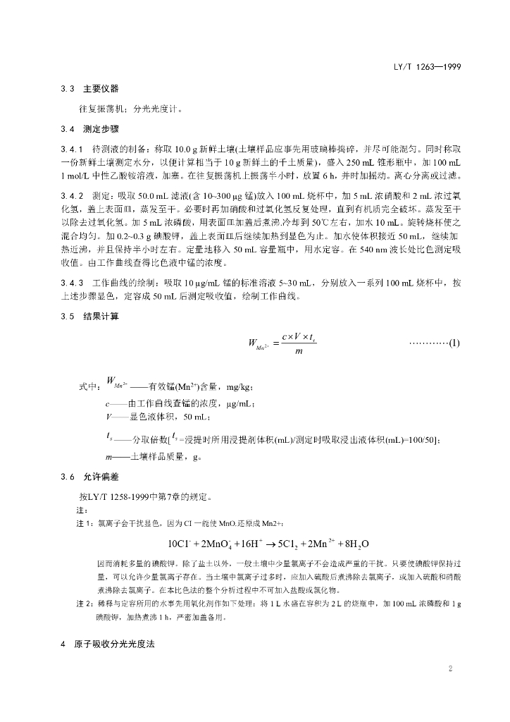 LY/T 1263-1999 森林土壤交换性锰的测定