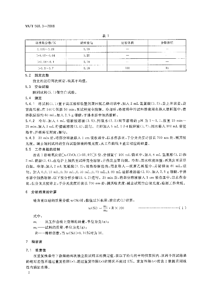 YS/T 568.3-2008 氧化锆、氧化铪化学分析方法 硅量的测定 钼蓝分光光度法