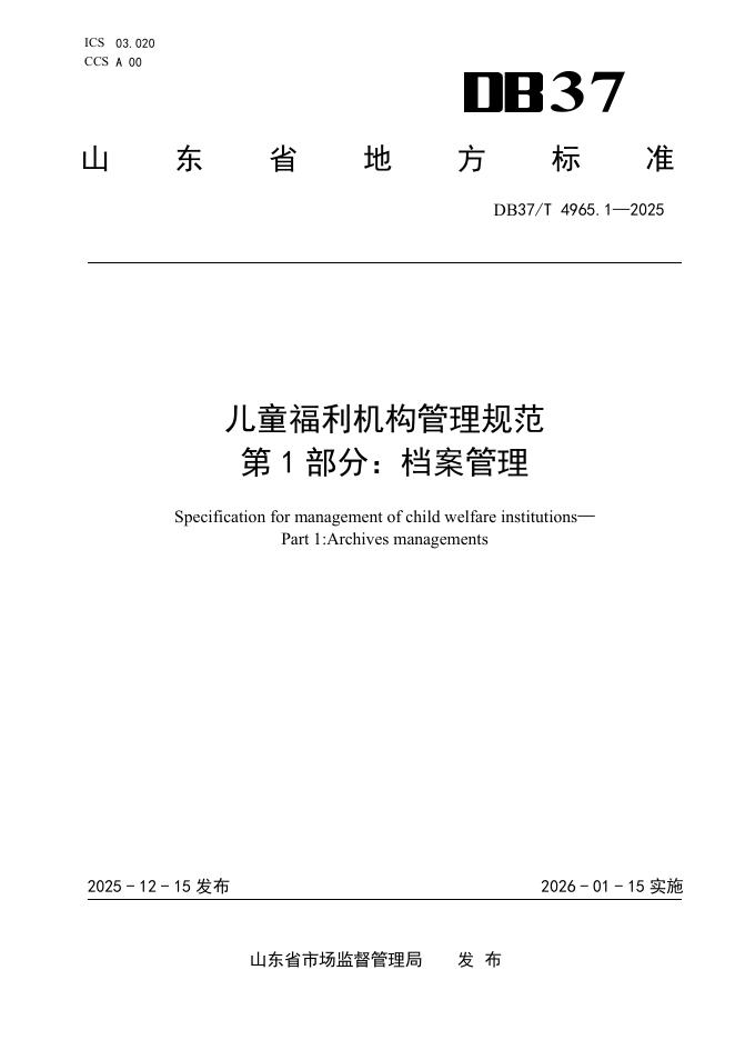 DB37/T 4965.1-2025 儿童福利机构管理规范 第1部分:档案管理