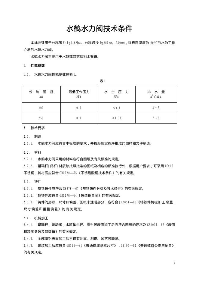 TB 1664-1985 水鹤水力阀技术条件