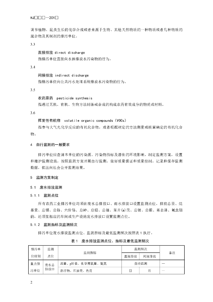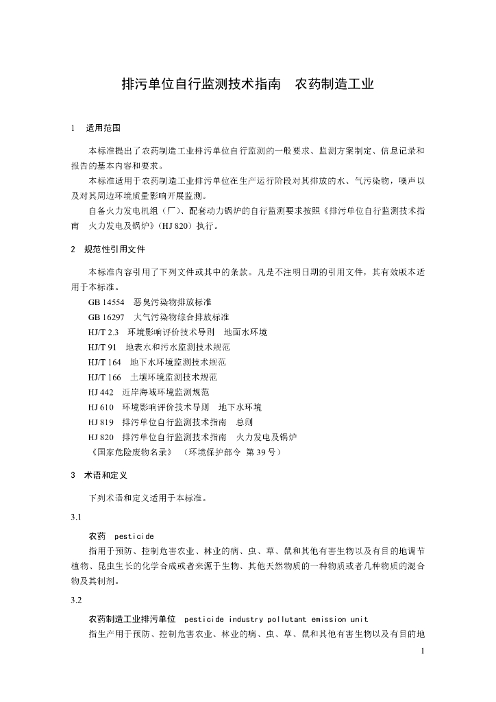 HJ 987-2018 排污单位自行监测技术指南农药制造工业