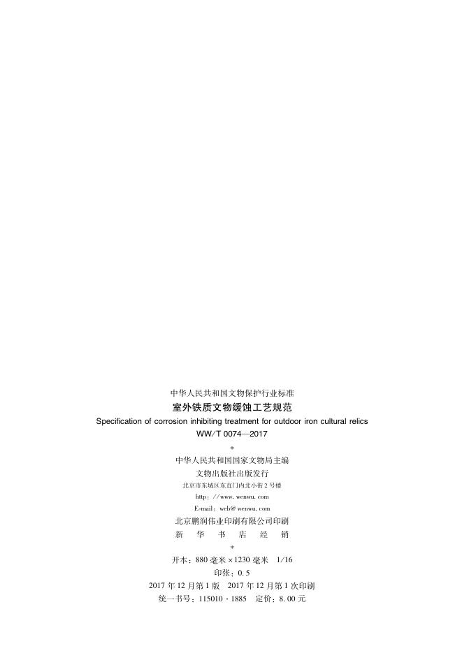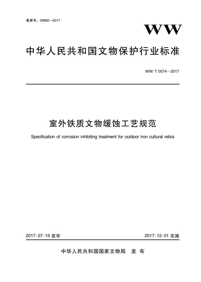 WW/T 0074-2017 室外铁质文物缓蚀工艺规范