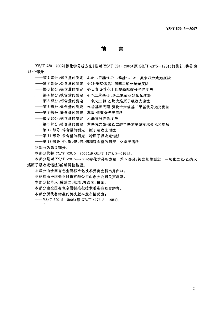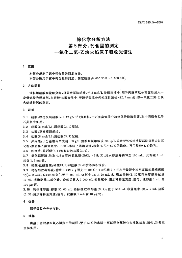 YS/T 520.5-2007 镓化学分析方法 第5部分:钙含量的测定一氧化二氮-乙炔火焰原子吸收光谱法