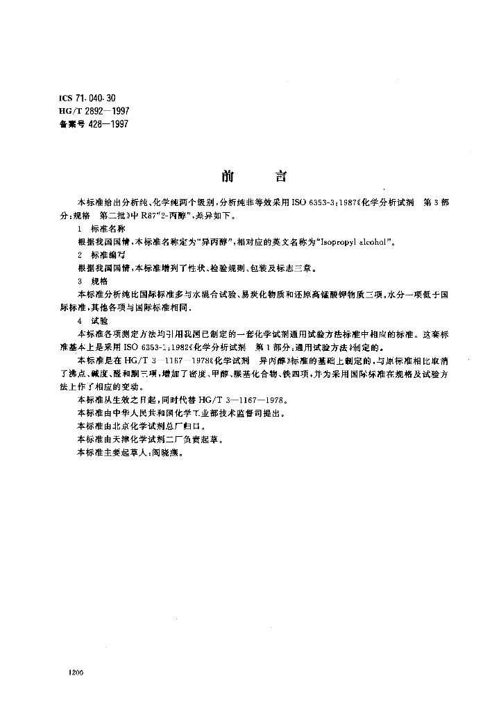 HG/T 2892-1997 化学试剂 异丙醇