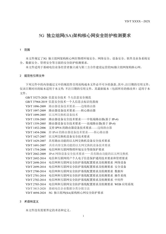 YD/T 4998-2024 5G独立组网(SA)架构核心网安全防护检测要求