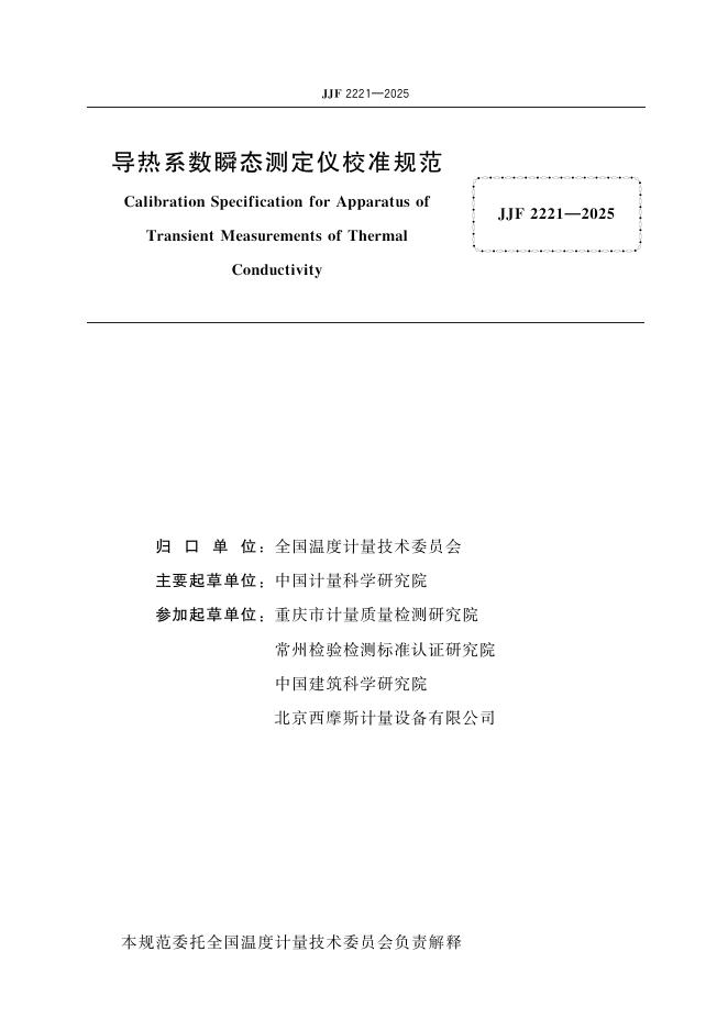 JJF 2221-2025 导热系数瞬态测定仪校准规范
