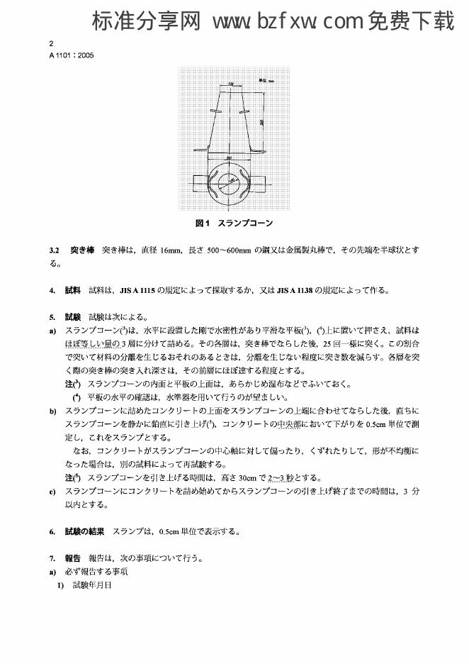 JIS A1101-2005 混凝土塌落度的试验方法