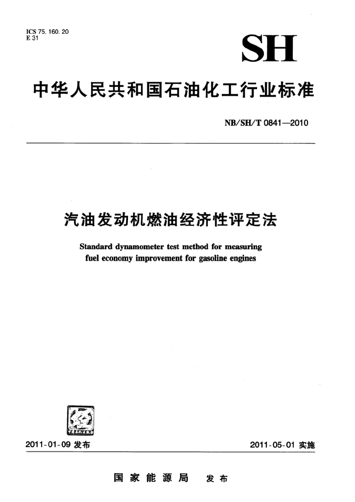 NB/SH/T 0841-2010 汽油发动机燃油经济性评定法