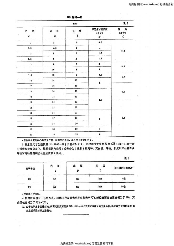 GB/T 2687-1981 滑动轴承 粉末冶金球形轴承型式、尺寸与公差