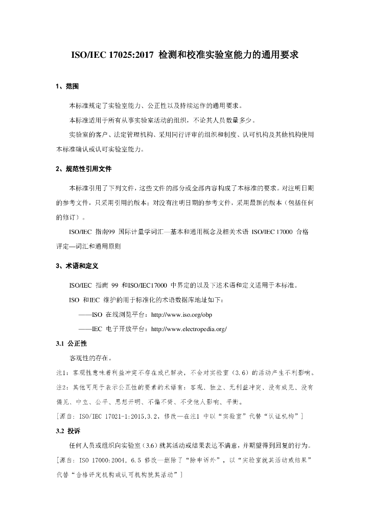 ISO 17025-2017 检测及校准实验室能力通用要求【中文版】
