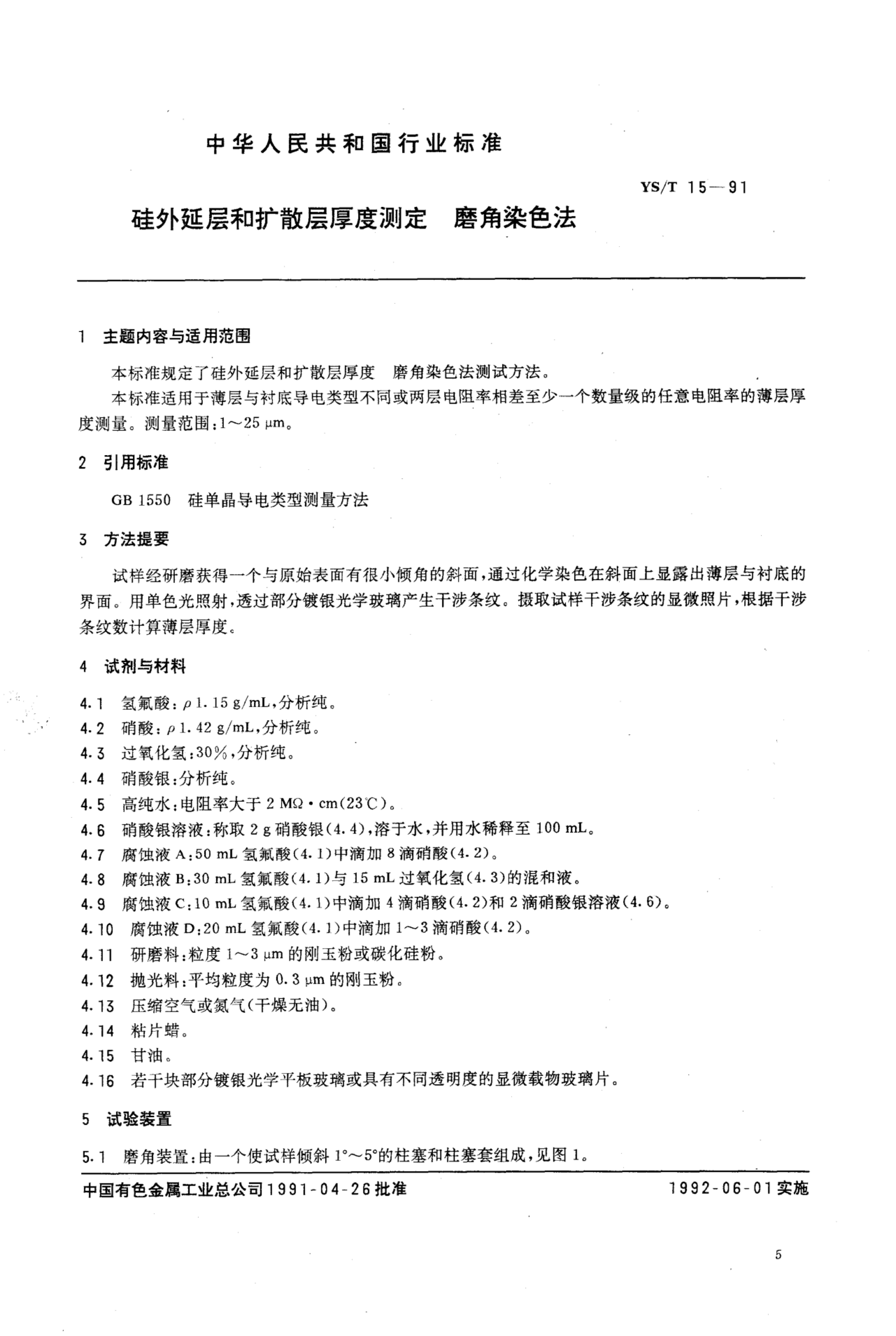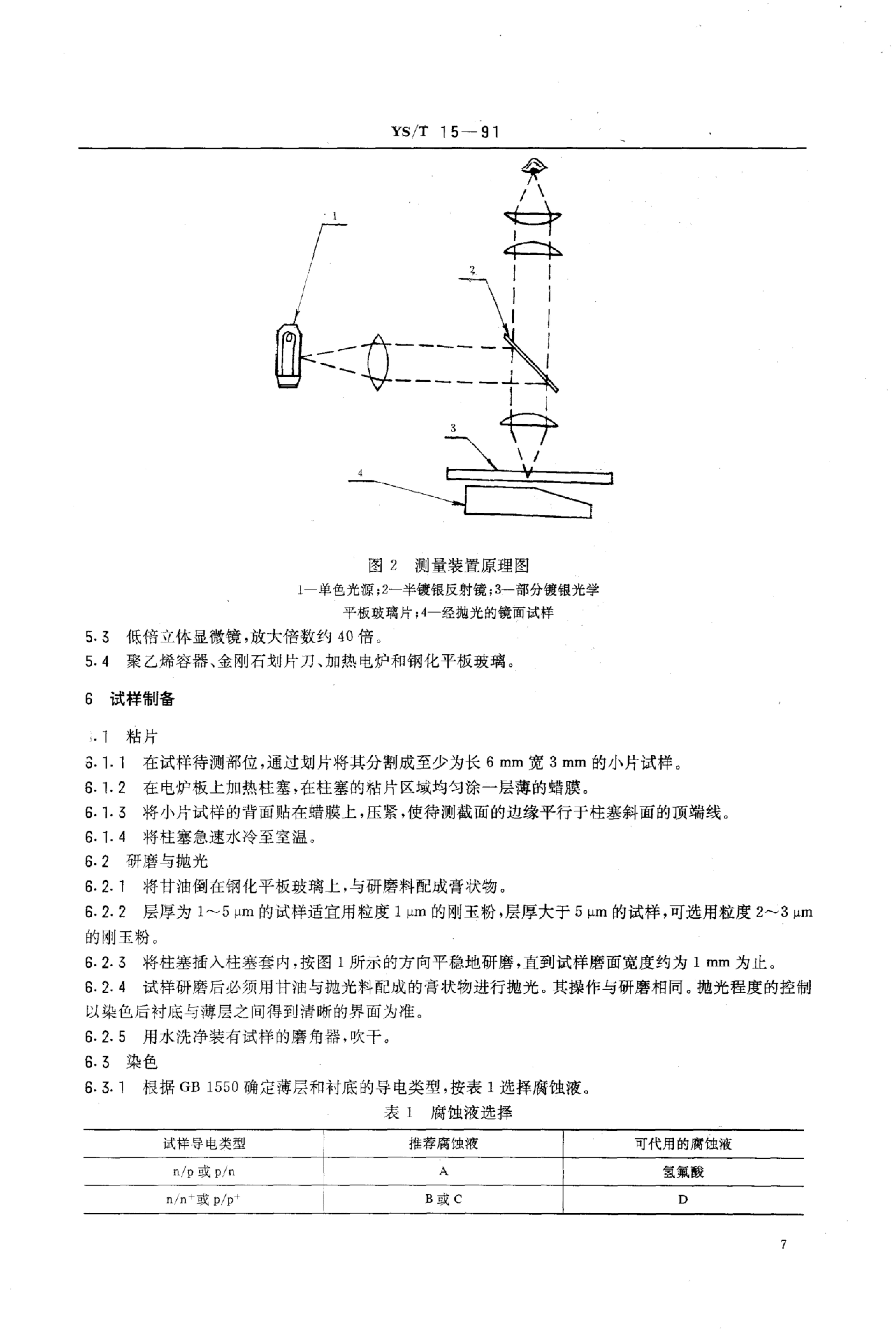 YS/T 15-1991 硅外延层和扩散层厚度测定磨角染色法