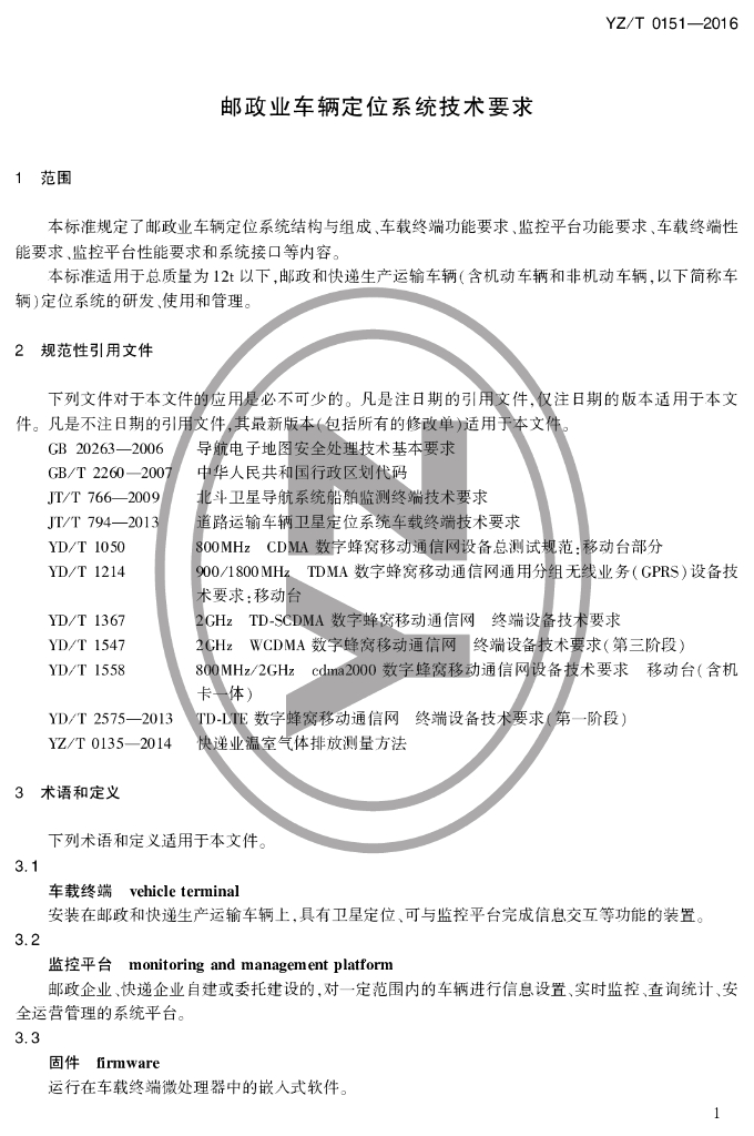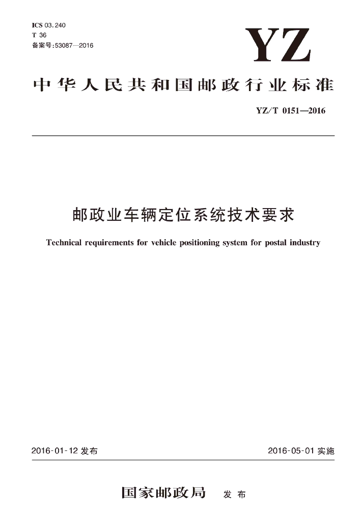 YZ/T 0151-2016 邮政业车辆定位系统技术要求