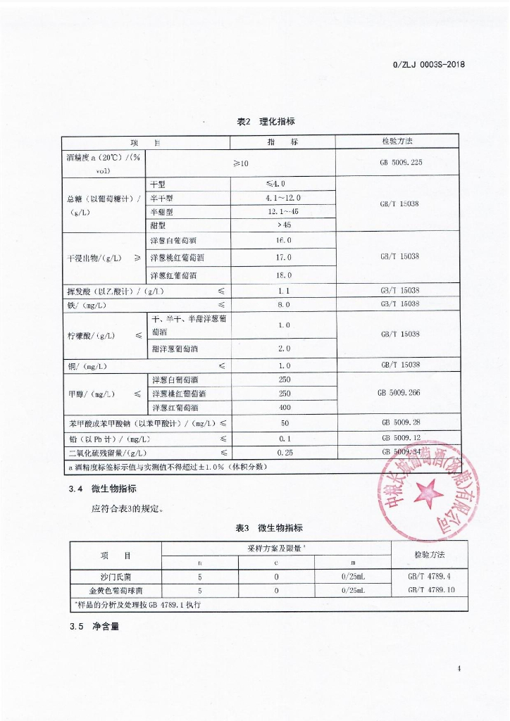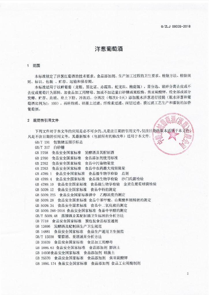 Q/ZLJ 0003S-2018 洋葱葡萄酒