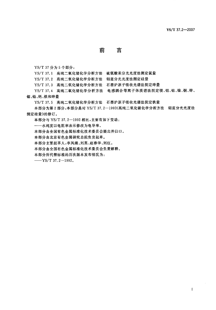 YS/T 37.2-2007 高纯二氧化锗化学分析方法钼蓝分光光度法测定硅量