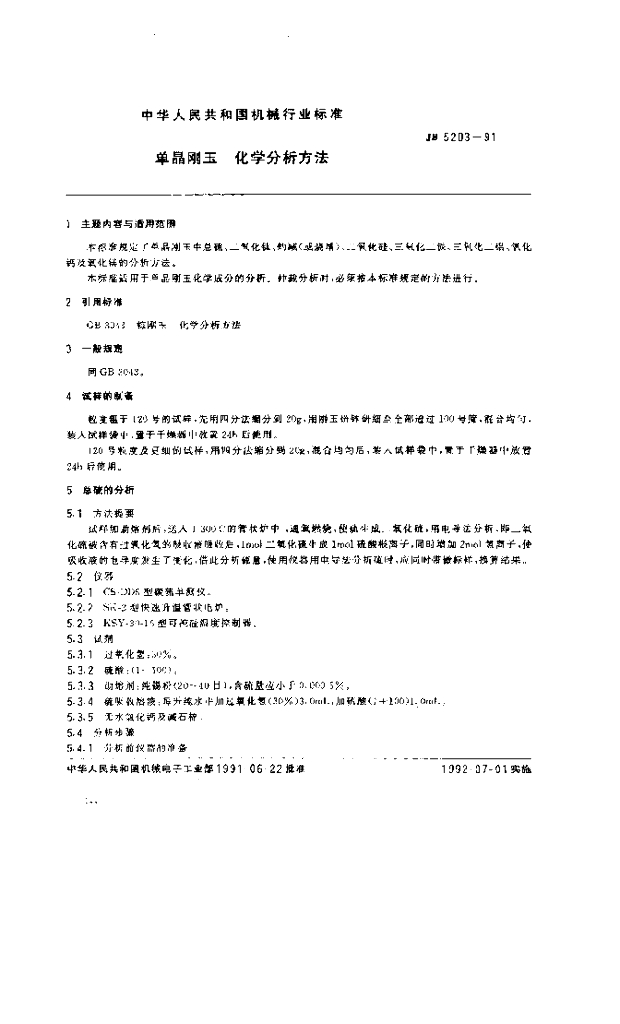 JB 5203-1991 单晶刚玉 化学分析方法