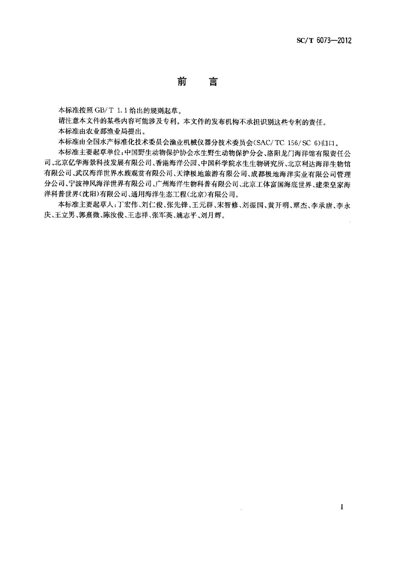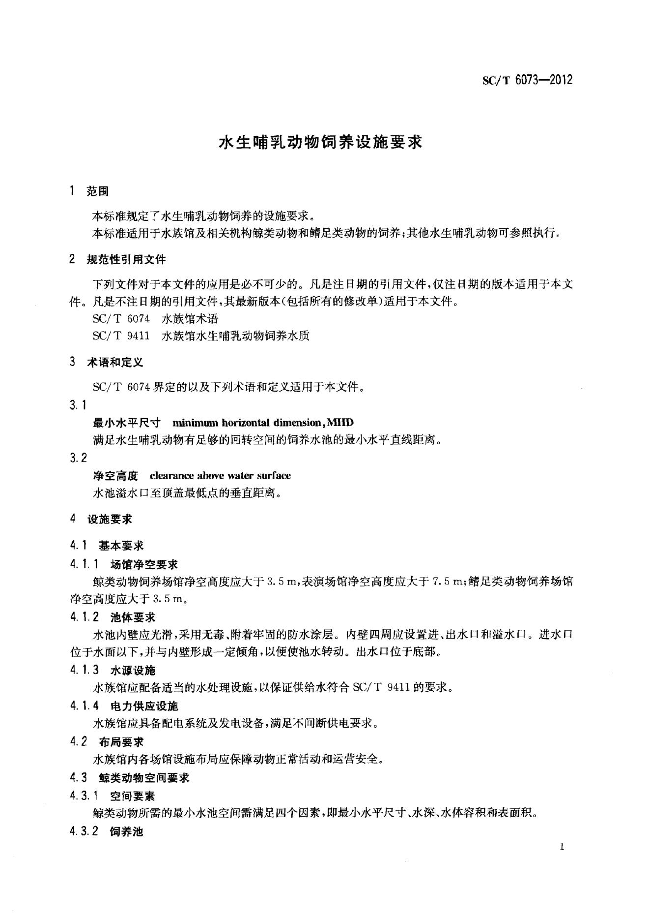 SC/T 6073-2012 水生哺乳动物饲养设施要求