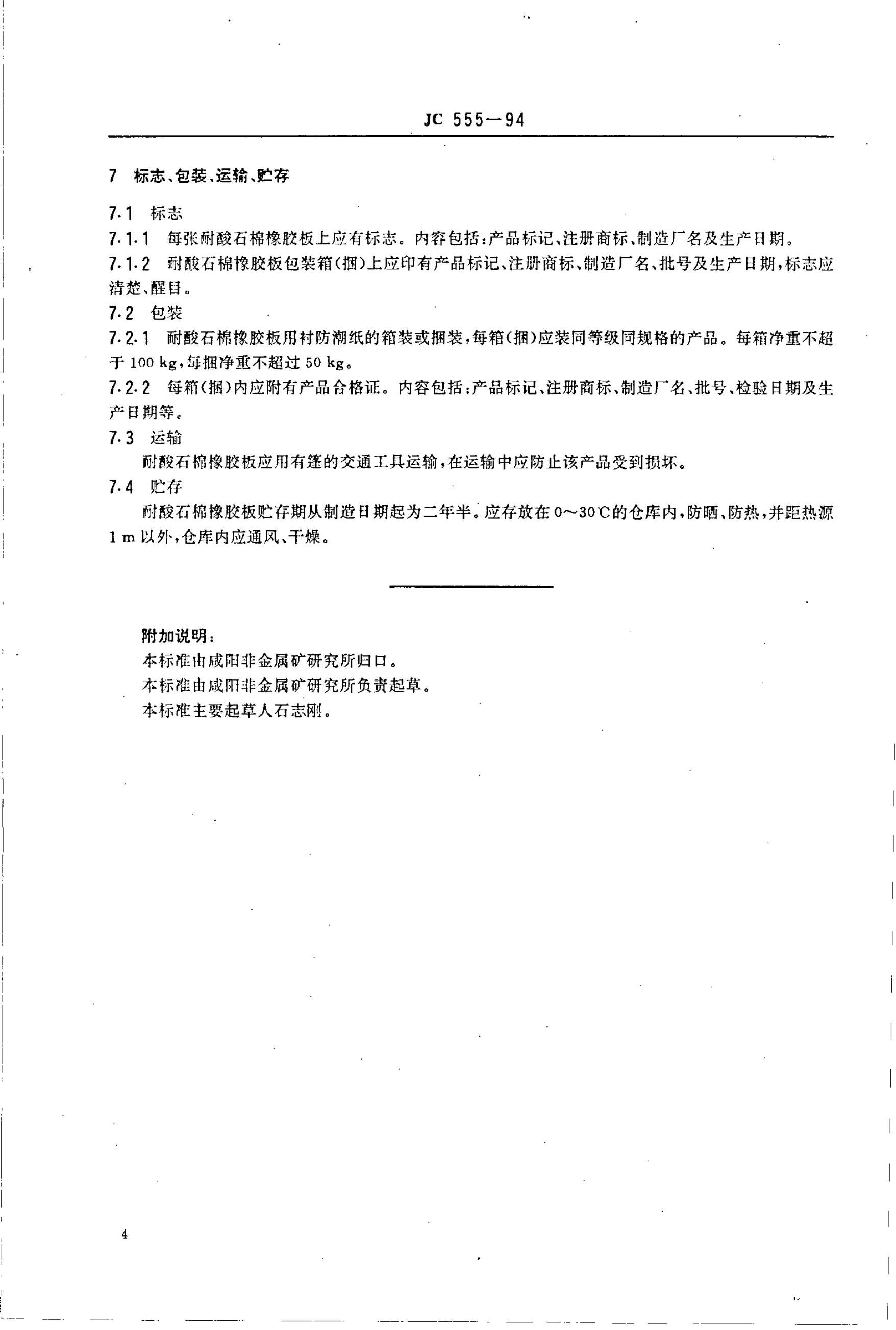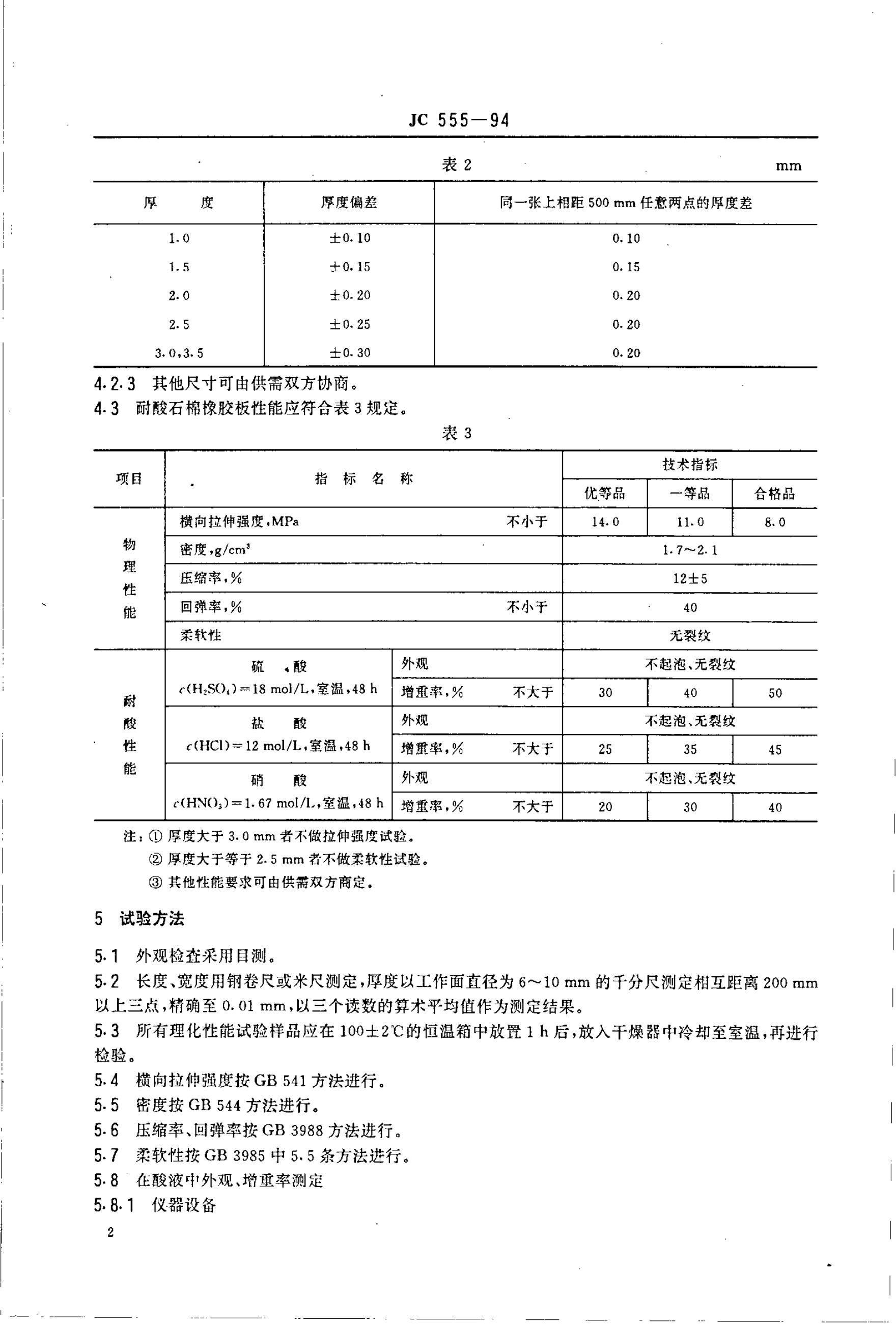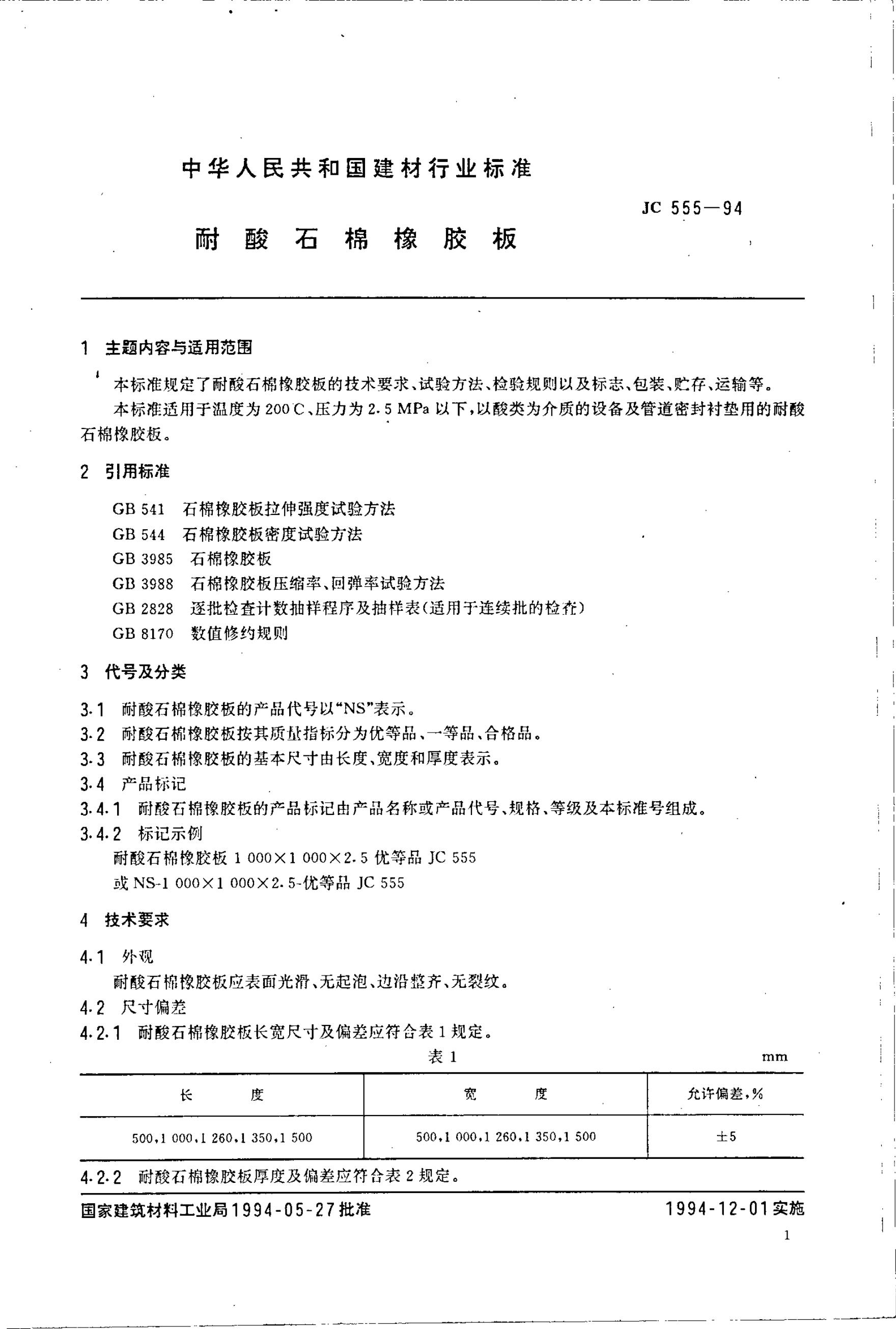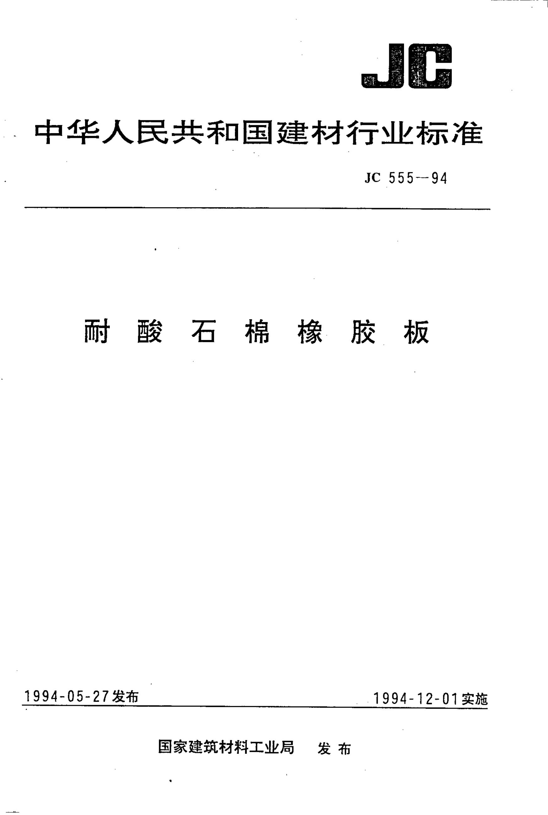 JC 555-1994 耐酸石棉橡胶板